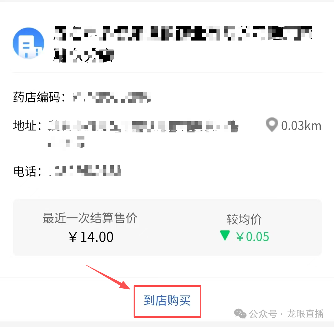 ⑤应用按距离遐迩、按结算价钱升降序等筛选功能,定位最优购买点,点击“到店购买”,按照导航快速购药。
