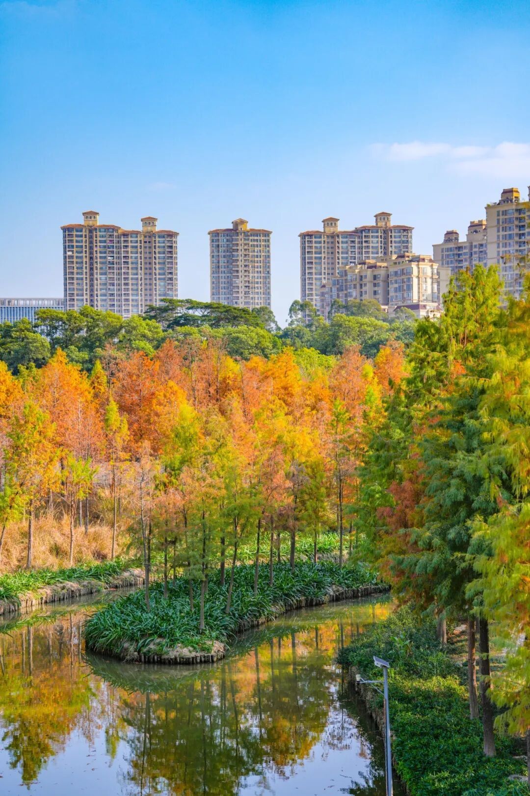 ▎东莞中心公园落羽杉环湖滋长 图:翟嘉欣