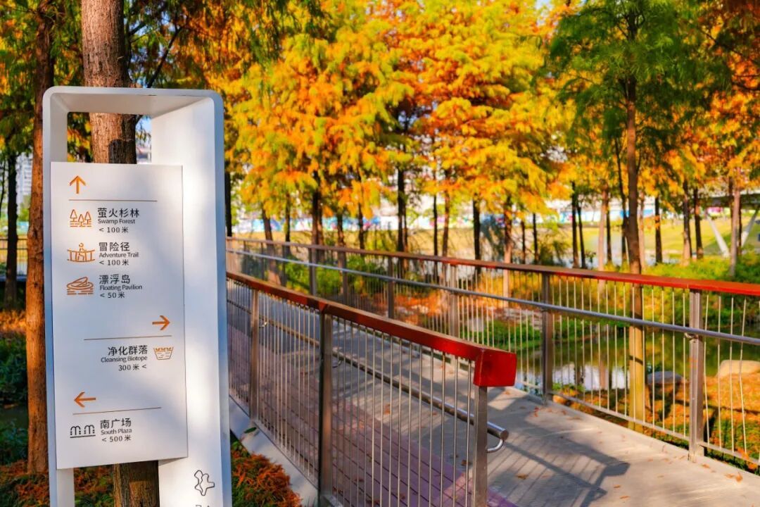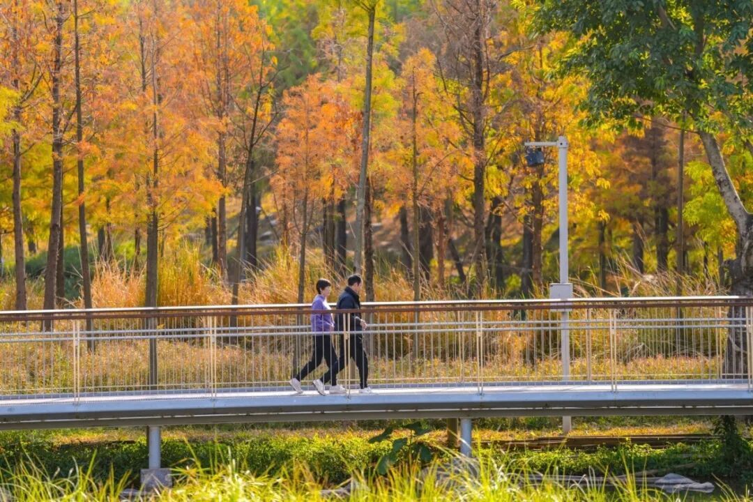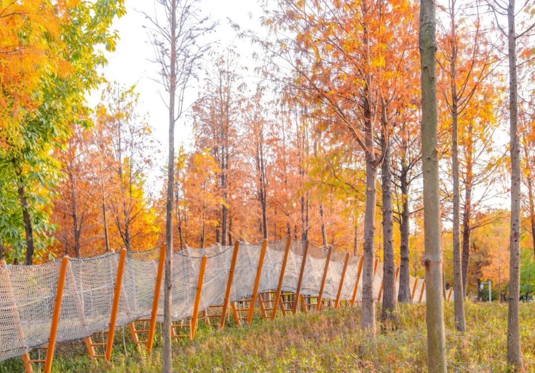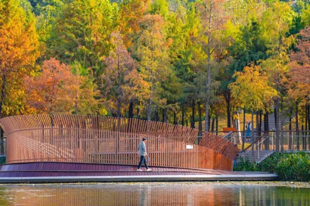 站在亲水栈谈上,不仅能近距离抚玩落羽杉的挺拔姿态,还能听见湿地关心的呼吸,感受城市中难觅的野趣。