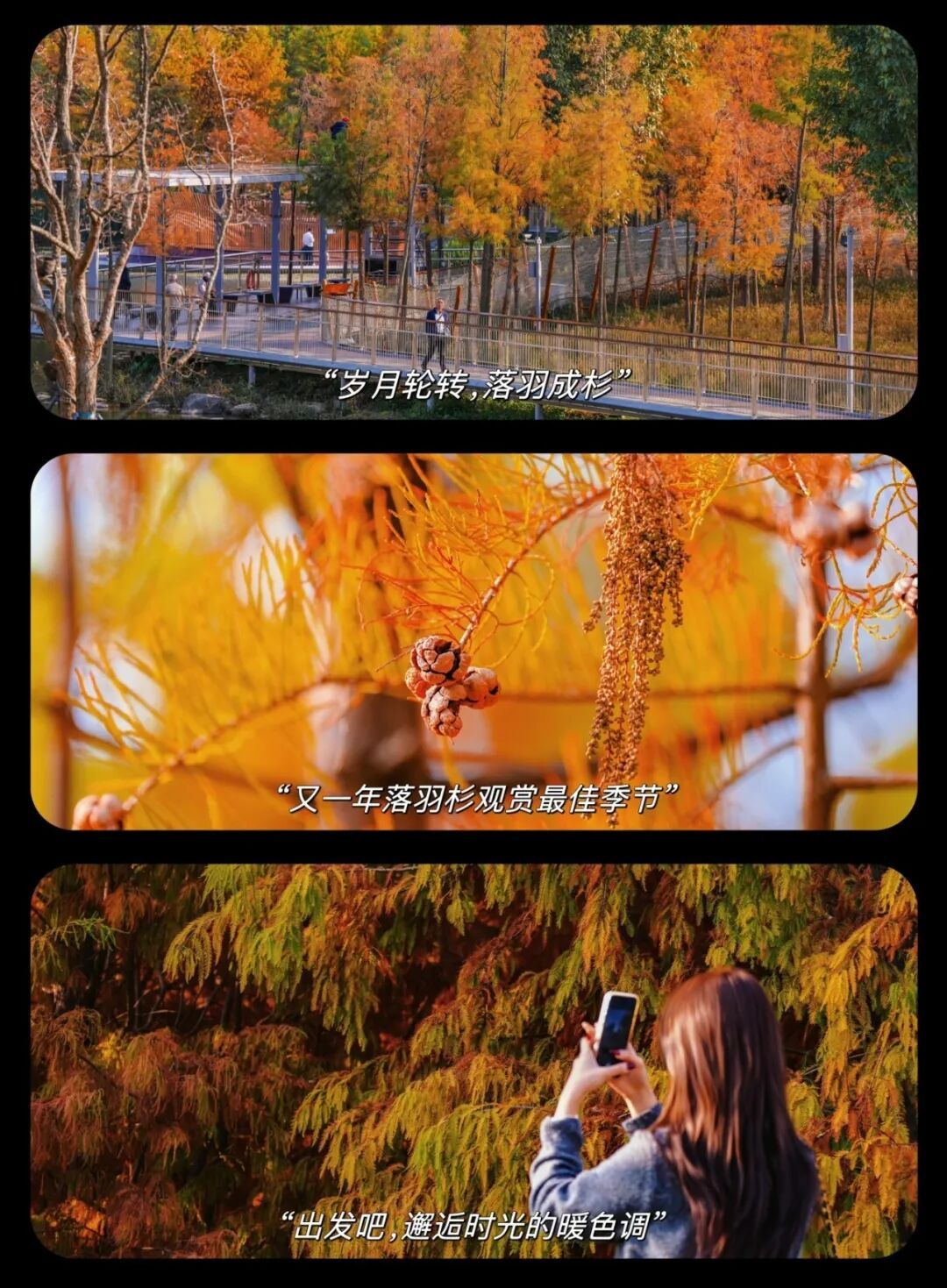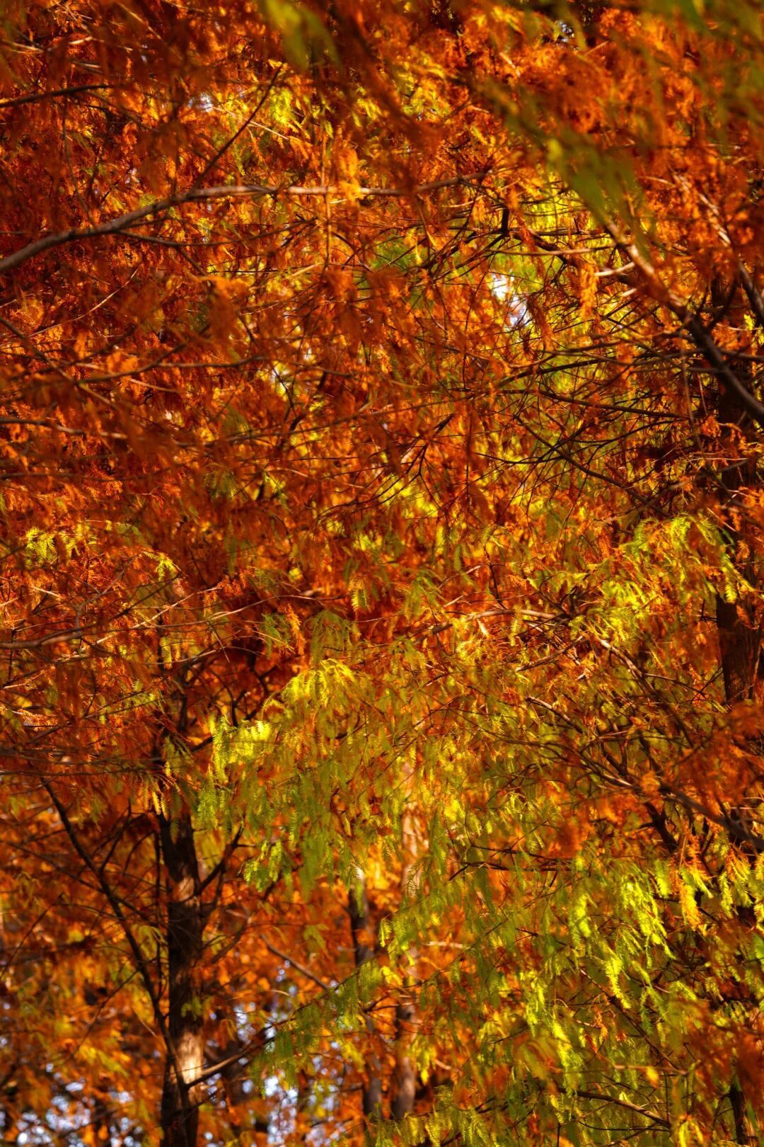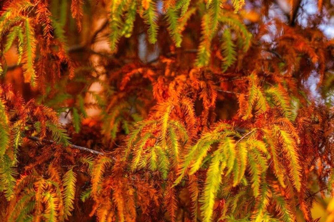 南边的秋冬莫得雪,却有红透的落羽杉