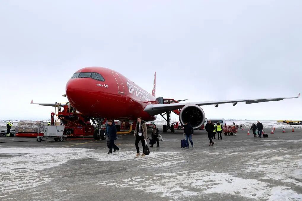 2025年3月18日,东说念主们乘坐飞机抵达丹麦自治领地格陵兰岛首府努克。新华社记者赵丁喆摄
