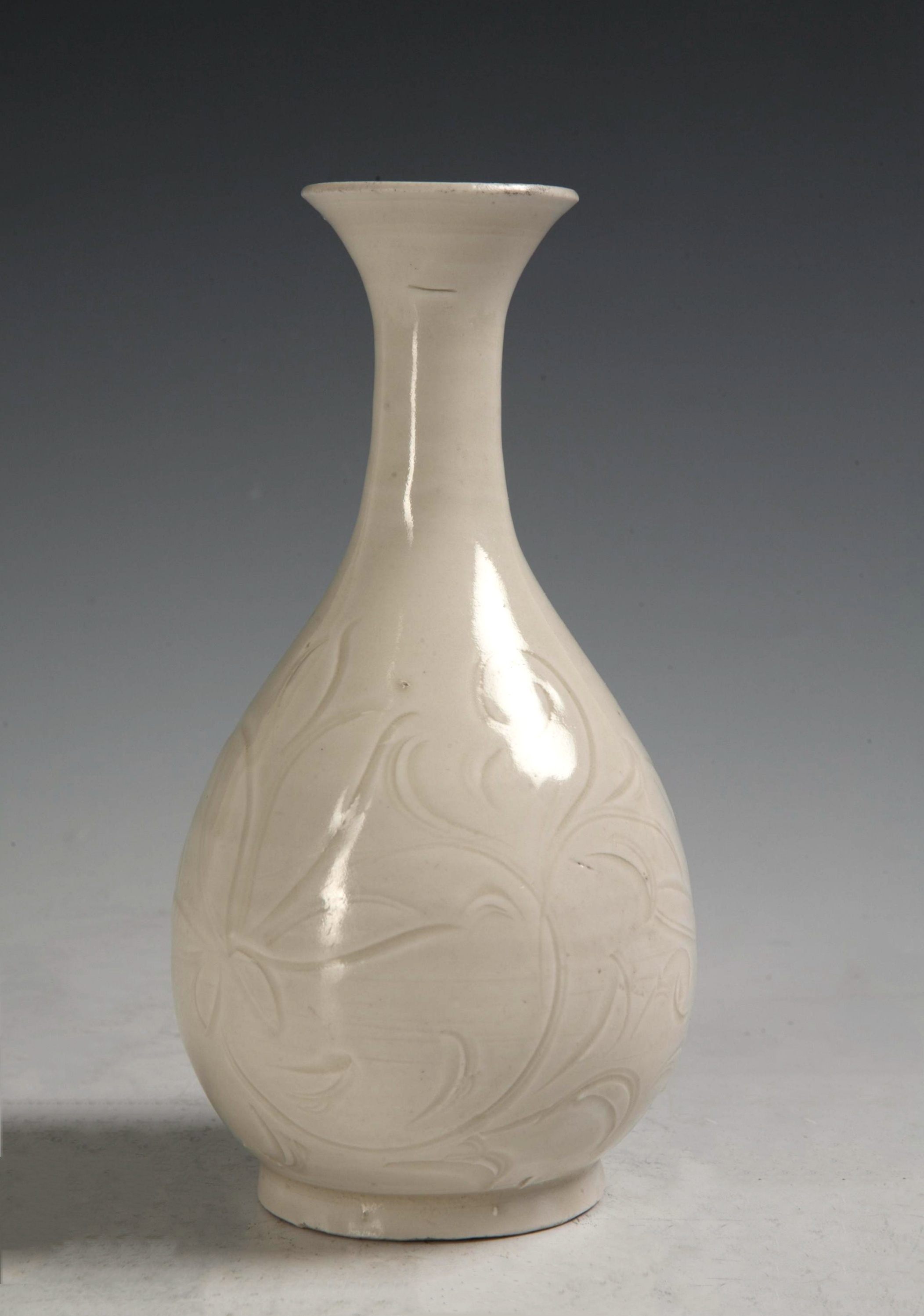 △宋 定窑白釉刻萱草纹玉壶春瓶 天津博物馆藏